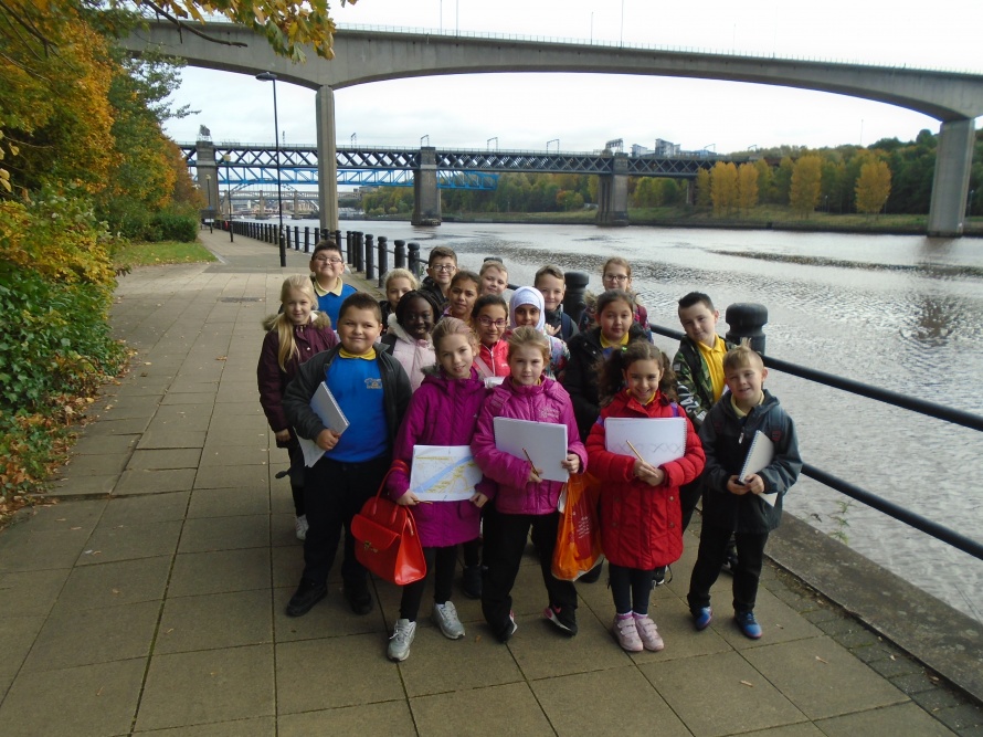 The Giraffes class walked along the river to the Millennium Bridge and crossed to the Sage, sketching and discussing the bridges along the way.
