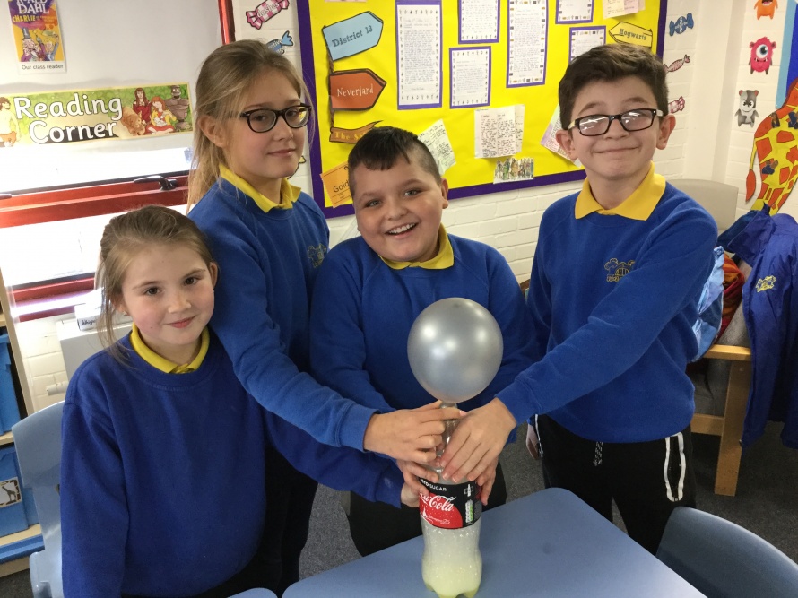 As part of our investigating materials and their changes science topic, Giraffes (Year 5) have been conducting an experiment this week which investigates how much gas is produced when an irreversible change occurs. To do this we created Fizz Inflators creating a reaction by mixing bicarbonate of soda and lemon juice to create carbon dioxide.