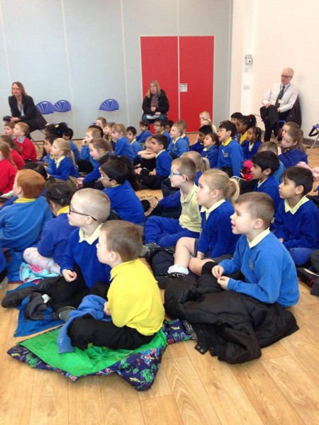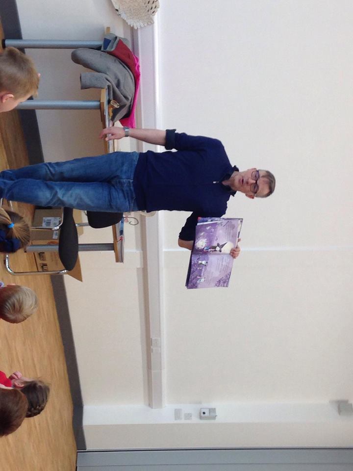 Pandas class went to meet the author Simon Puttock.